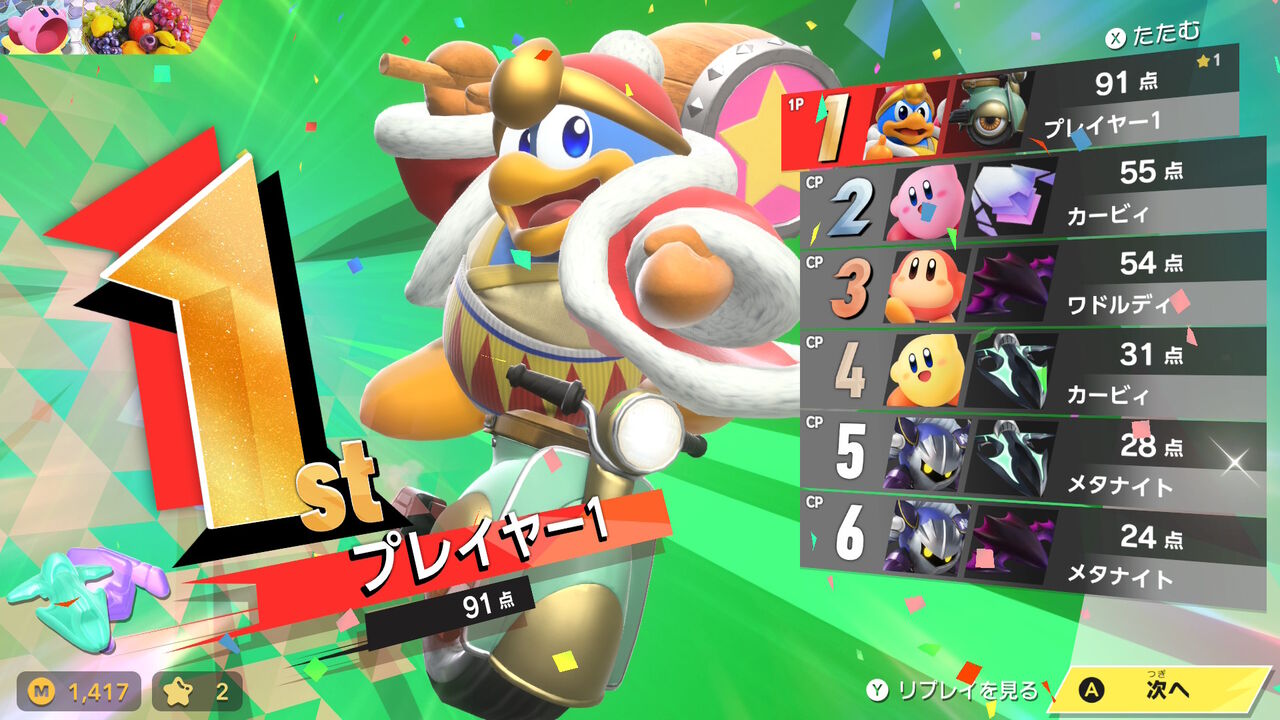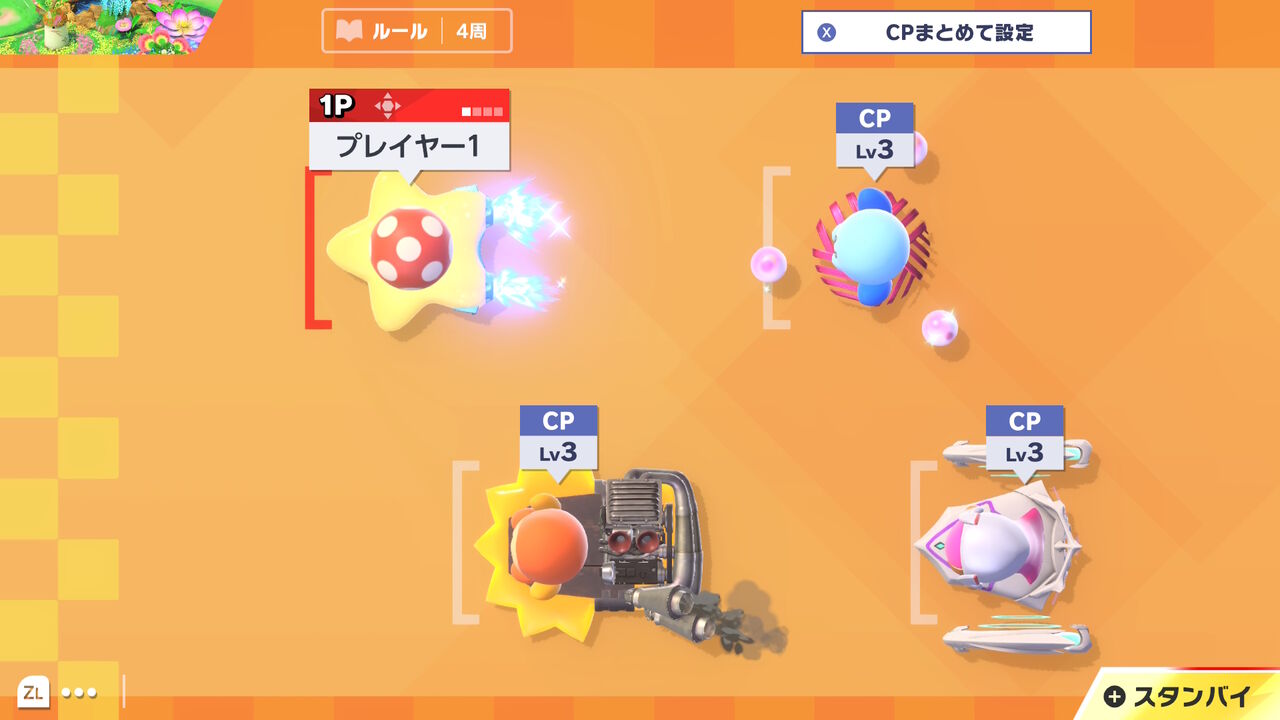 最初なので難易度はカジュアルにして、キャラはカービィで挑戦。