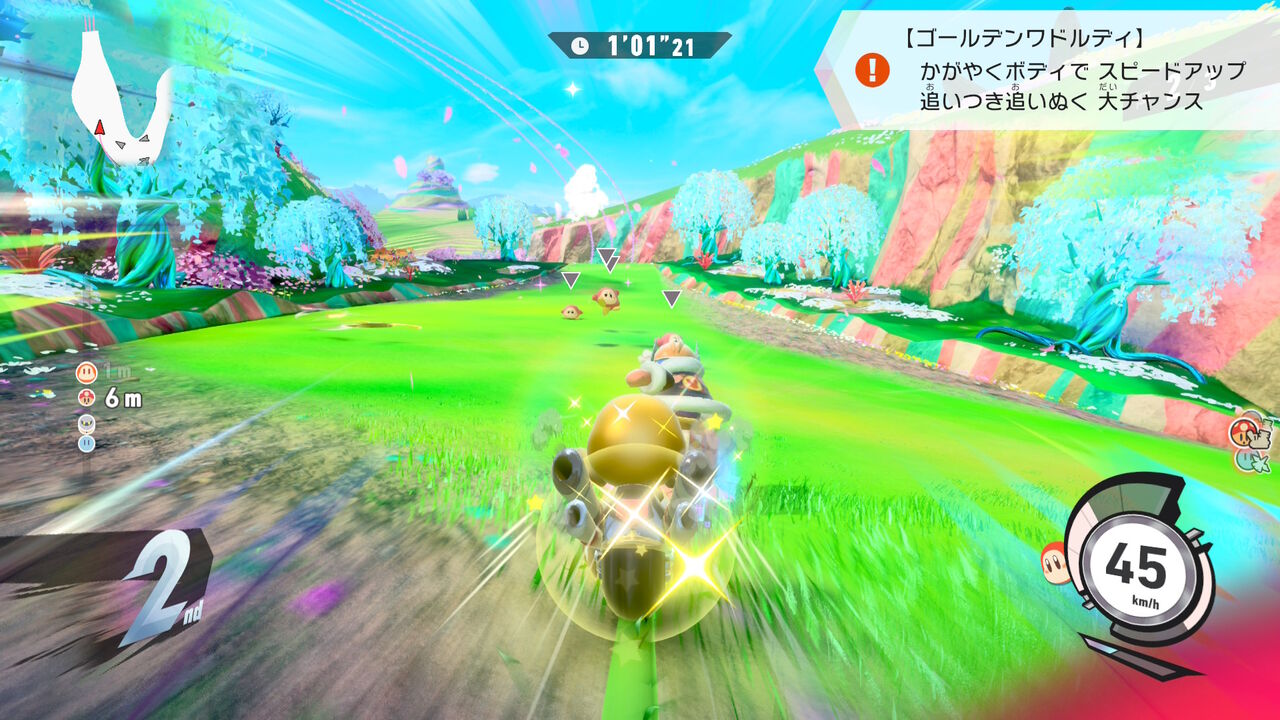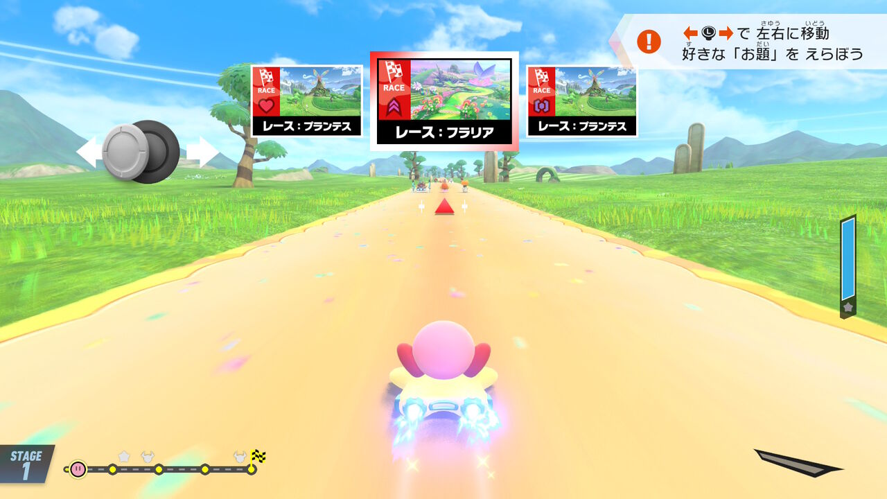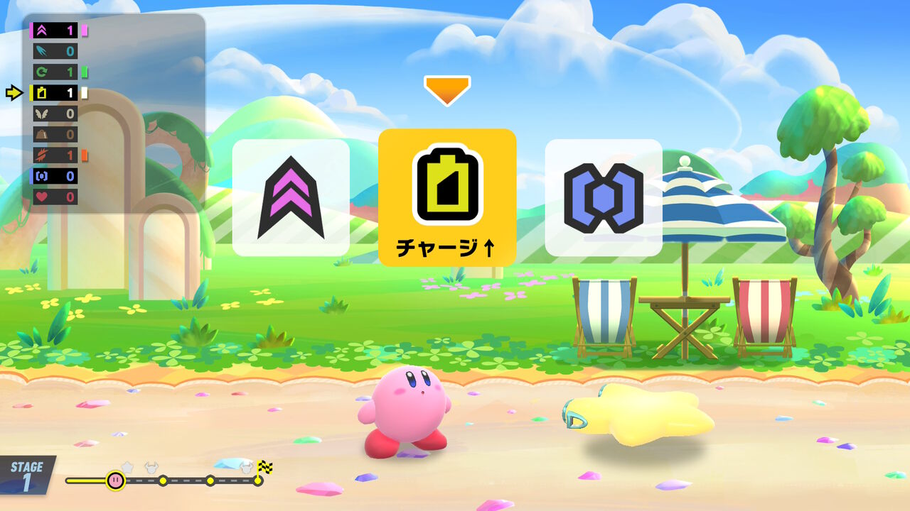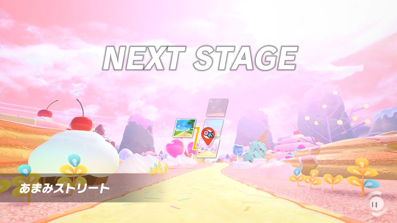 更に選んだお助けキャラによって、次に進むルートが分岐する模様。今回はハートを選んだらウィスピーウッズが大量のお菓子をくれて、「あまみストリート」へと分岐した。
