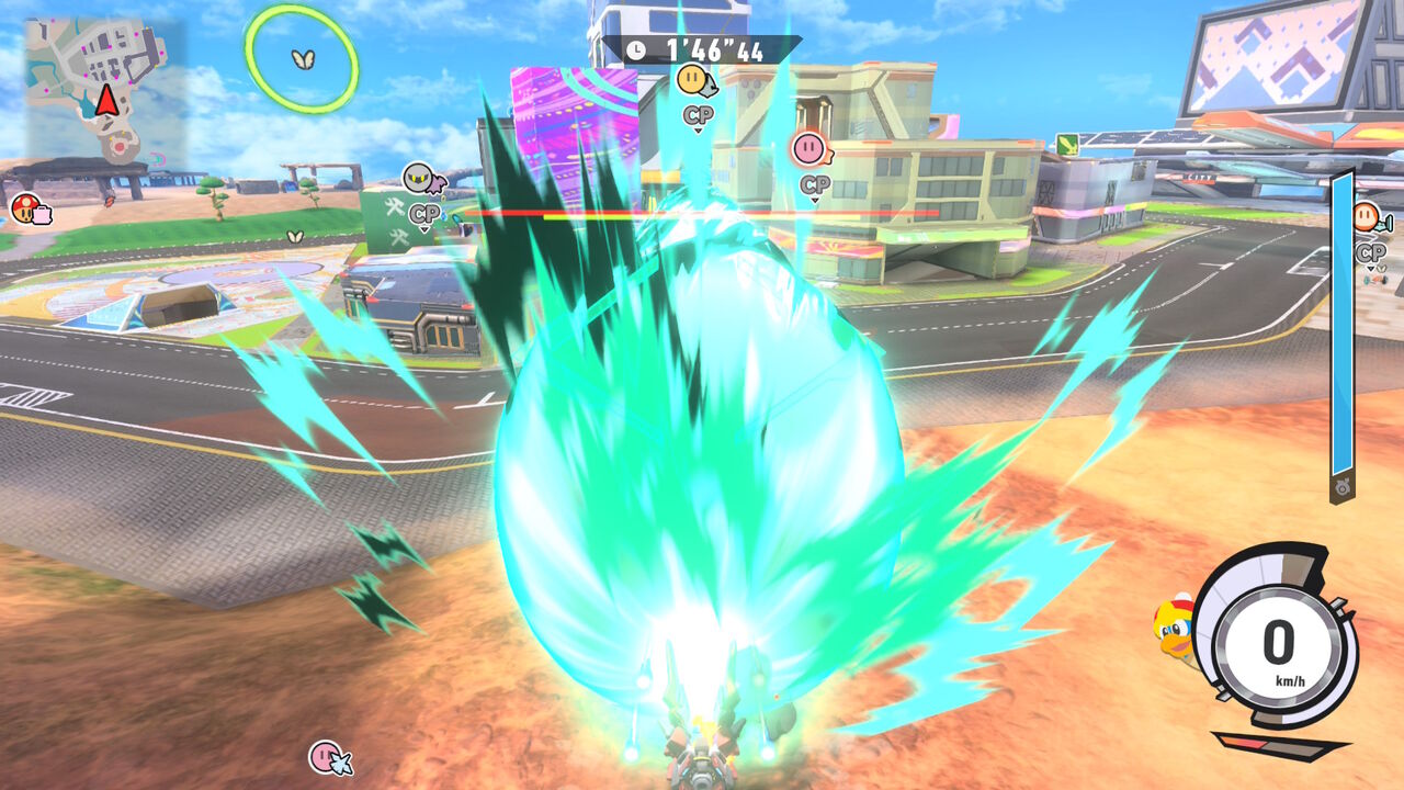 フリー操作とハンドル操作が選べるが、フリー操作なら結構直感的に見たまま動けるので非常にやりやすかった。変なことしなければCP Lv.3相手ならほぼ勝てるかなという感じ。ただこれ小さいのにアイテムが結構ぽこぽこ出てくるから、相手を増やすと結構な乱戦になりそうな印象。手頃なモードだからそれはそれで楽しそうだが。