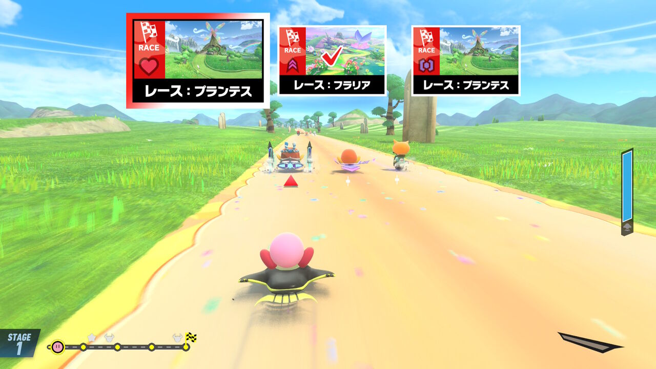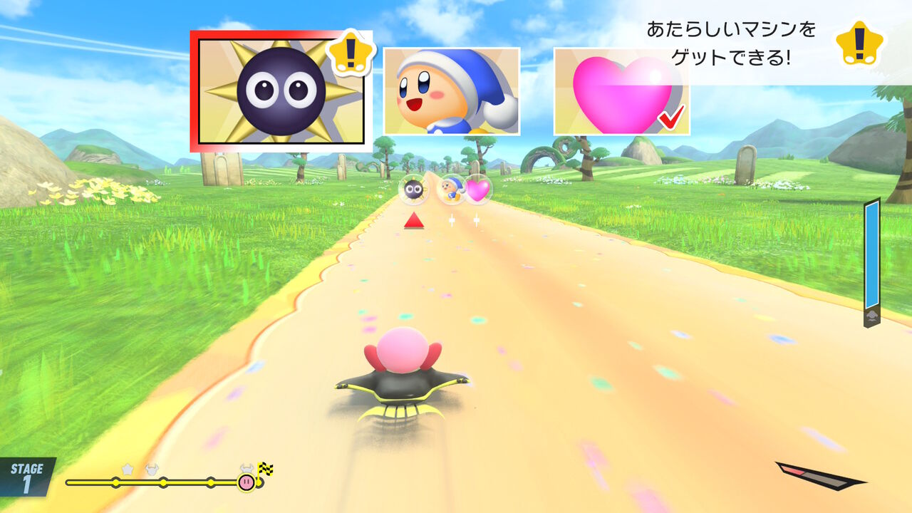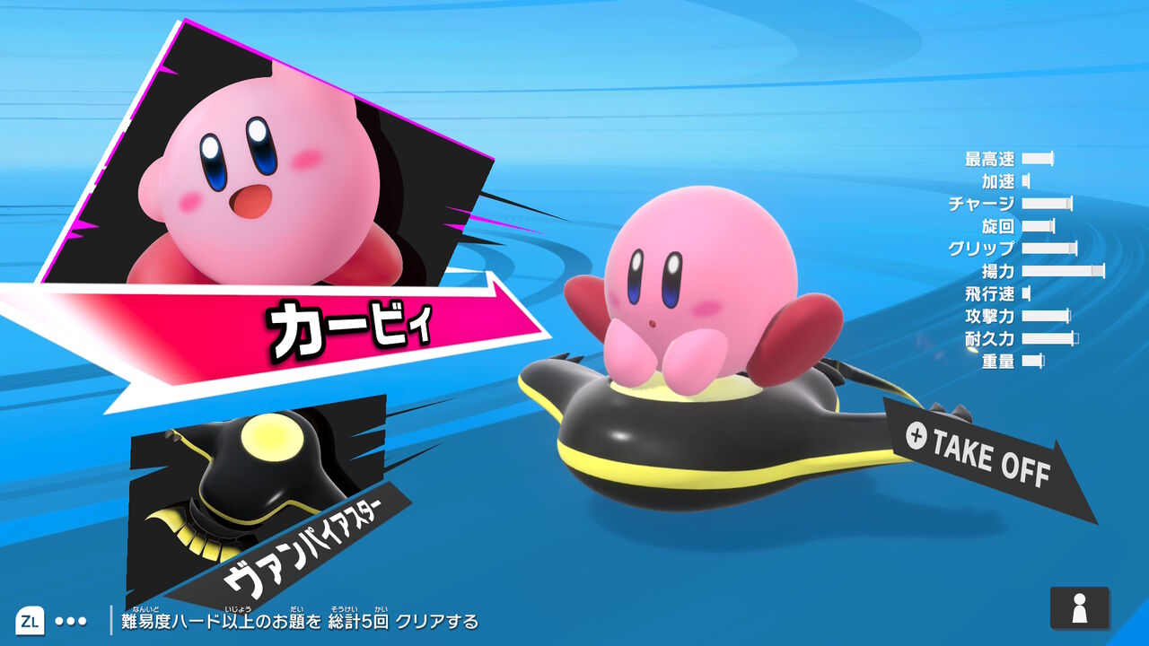 キャラも改めて選択できるが、折角なので引き続きカービィ。やっぱ主人公でしょ。マシンはヴァンパイアスター選んだけど、まぁどうせ乗り換えることになるから臨機応変に。