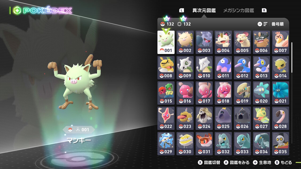 なにはともあれこれで色違いリージョンフォームも全てゲット!ミアレ図鑑と異次元図鑑でちょうど8種ずつ。このうちヒスイリージョンだけはスペシャルサーチ限定かな?まぁそれ以外も★3・4限定で探すの大変だとは思うが…