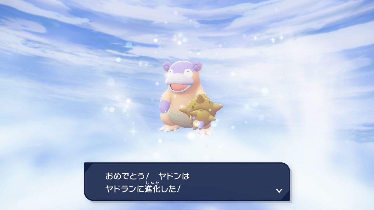 これで残るはミアレ図鑑のリージョンフォーム。というわけで「ガラルヤドン」「ガラルヤドラン」。ガラルヤドンは★3エスパー異次元でも湧くようなのだけど、後述する最後のやつがスペシャルサーチでしか出ず、その厳選過程で先に毒リージョン異次元(ガラルヤドン系&ヒスイハリーセン系)が湧いたのでそちらで捕獲。運良く確定枠でガラルヤドンを引いて、その後数分程度のファストトラベル厳選で2匹目も出てあっさり済んだ。しかしまぁSVのブルベリで初めて偶然出会ったときも思ったけど、ガラルヤドンの真っ黄色はほんとびっくりする。