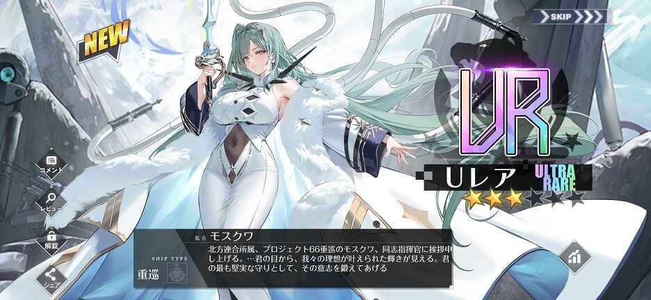 指揮官の頼れる"友達"な「モスクワ」、物理な真面目ガール「オゾルノイ」、そして目隠し蹲踞お祈りポーズとかいう情報が渋滞しまくっている「クラースヌィイ・カフカース」の3人。折角UR艦がいるのに、SR艦に話題を搔っ攫われるくらいクラースヌィイのインパクトが凄い。着せ替えじゃなくてデフォがこれで、着せ替えも着せ替えで凄いからもうなんか凄い(?)ここまで来ると真っ当な衣装のオゾルノイが癒しまである。