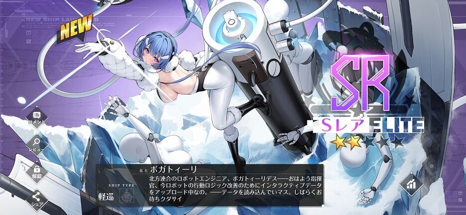 クーちゃんやオレグの姉妹艦(ネームシップ)で、オレグからの繋がりかロボットエンジニア…というか公式生放送では「アンドロイド」と明言されている。そもそもKAN-SENが人工生命体なのに、そのうえで更にアンドロイドってなんだよと思わないでもない。普通の時とアンドロイドの時を切り替えられるようで、後者の場合語尾がカタカナになっている。また貴重なボクっ娘。