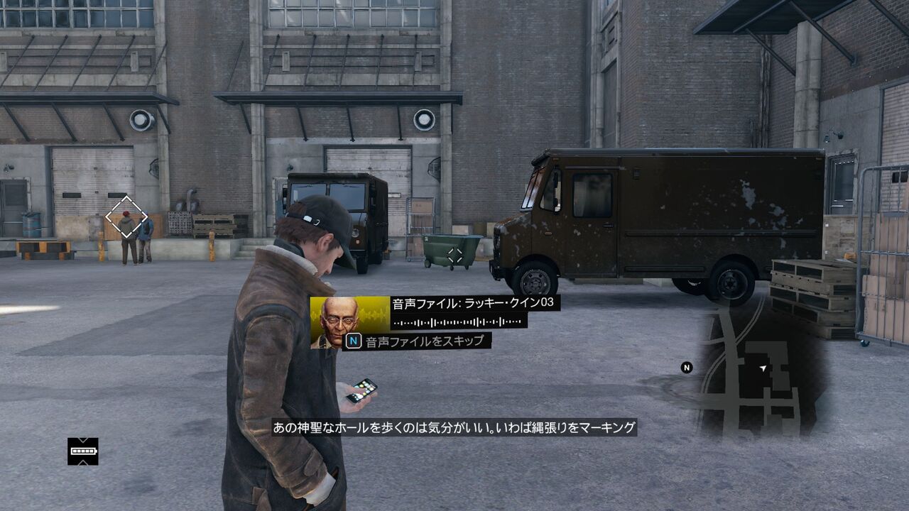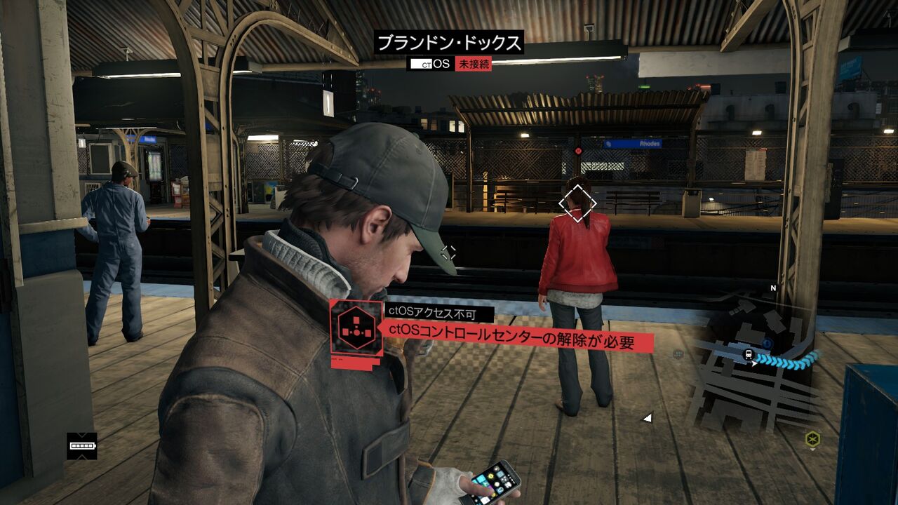 「ラシーヌ」のある「ブランドン・ドックス」はまだctOSの解除が出来ていないので、まずはコントロールセンターへ。ctOSタワーと違ってこちらはきっちり警備がいるので、テキトーに倒しながらアクセスコードを持った警備員を探し、コードを手に入れてコントロールセンターへ侵入。
