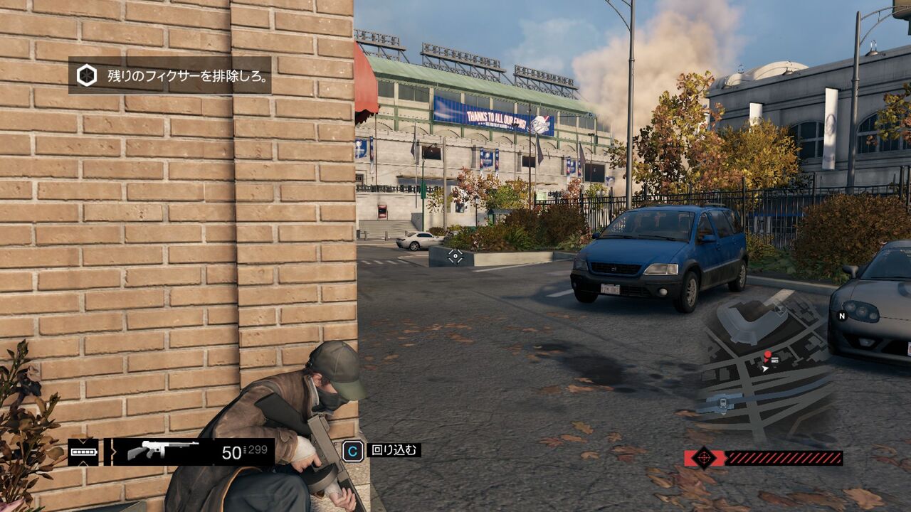 ジャクソンの乗る電車付近に向かうと、多数の敵フィクサーが今まさに襲わんとするところ。電車ハッキングを取得していれば、電車を発進させることでジャクソンが襲われるのは防げて、そのまま敵フィクサーを全て排除することになる。街中なので遮蔽物が多く、各個撃破すればそう難しくはない。ただ評判を気にするなら市民を巻き込まないようにだけ注意かも。