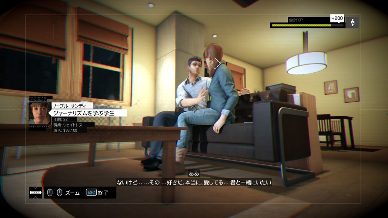 なお「プライバシー侵害」にて、完全に人が倒れているうえ、近くのスマホからは息子と思しき人物からのメッセージが届いているなど、どう考えても通報ものな事案を発見。しかしやってることはハッキングしてプライバシー侵害してるだけなので、プレイヤーが出来ることはただ見ているだけという悲しみ。上で載せた告白して玉砕してるシーンみたいな面白映像の時もあるのに…