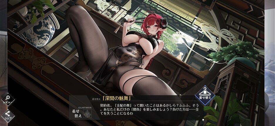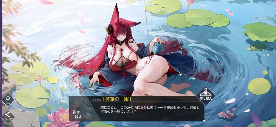 春節衣装第二弾。今回もえっちえっち。着せ替え前から既にドえっちな新キャラがいたような気がしないでもないが。そういえばなんかエロ頼りに傾倒したソシャゲみたいな話題でアズレンはどっちかみたいな論争(?)があるようだけど、私としては最初からだろと思う。そもそもとして開発・運営両会社の社長がそっち寄りだし、ここ最近主にLive2Dギミックで露骨さが増したから外から見たらそう見えるだけかと。
