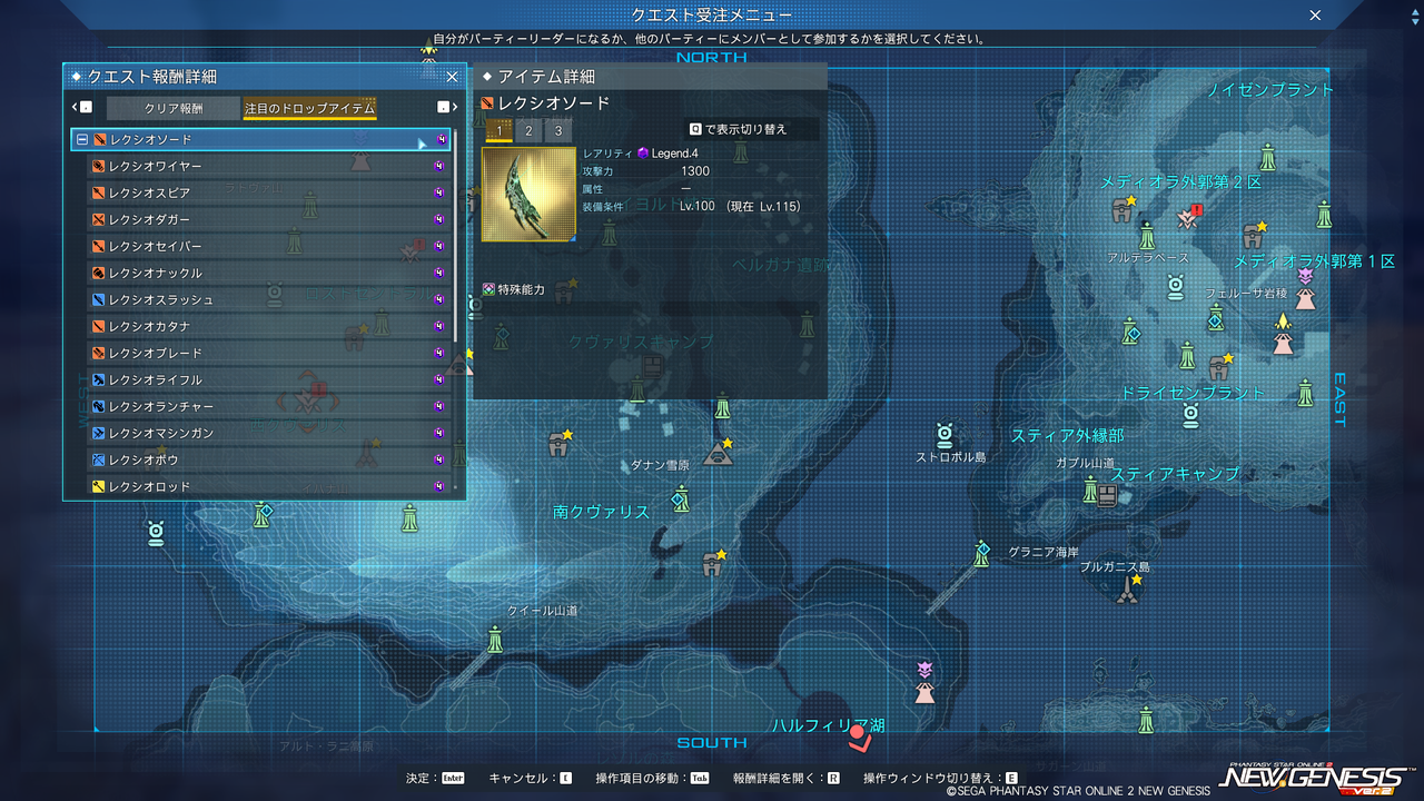 LG4武器「レクシオ」シリーズが登場。形状的に『PSO2』の★15武器「フルクシオ/リンザー」シリーズが元だと思われる。