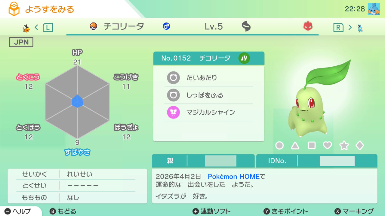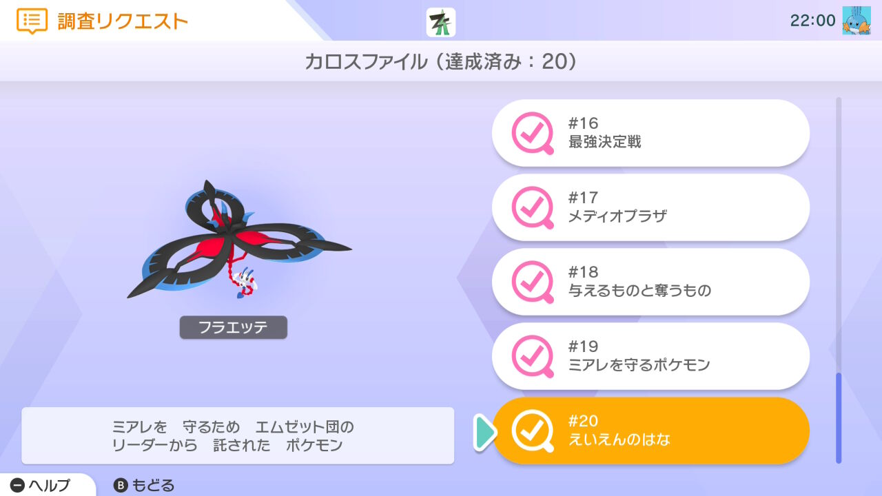 というわけで、発売から半年弱経ってついにHOMEとの連携が実装されました。ボックスへの出し入れはもちろんのこと、図鑑や調査リクエストにもZAの要素がちゃんと追加されている。ちなみに出身マークはメガシンカのマークっぽいもの。