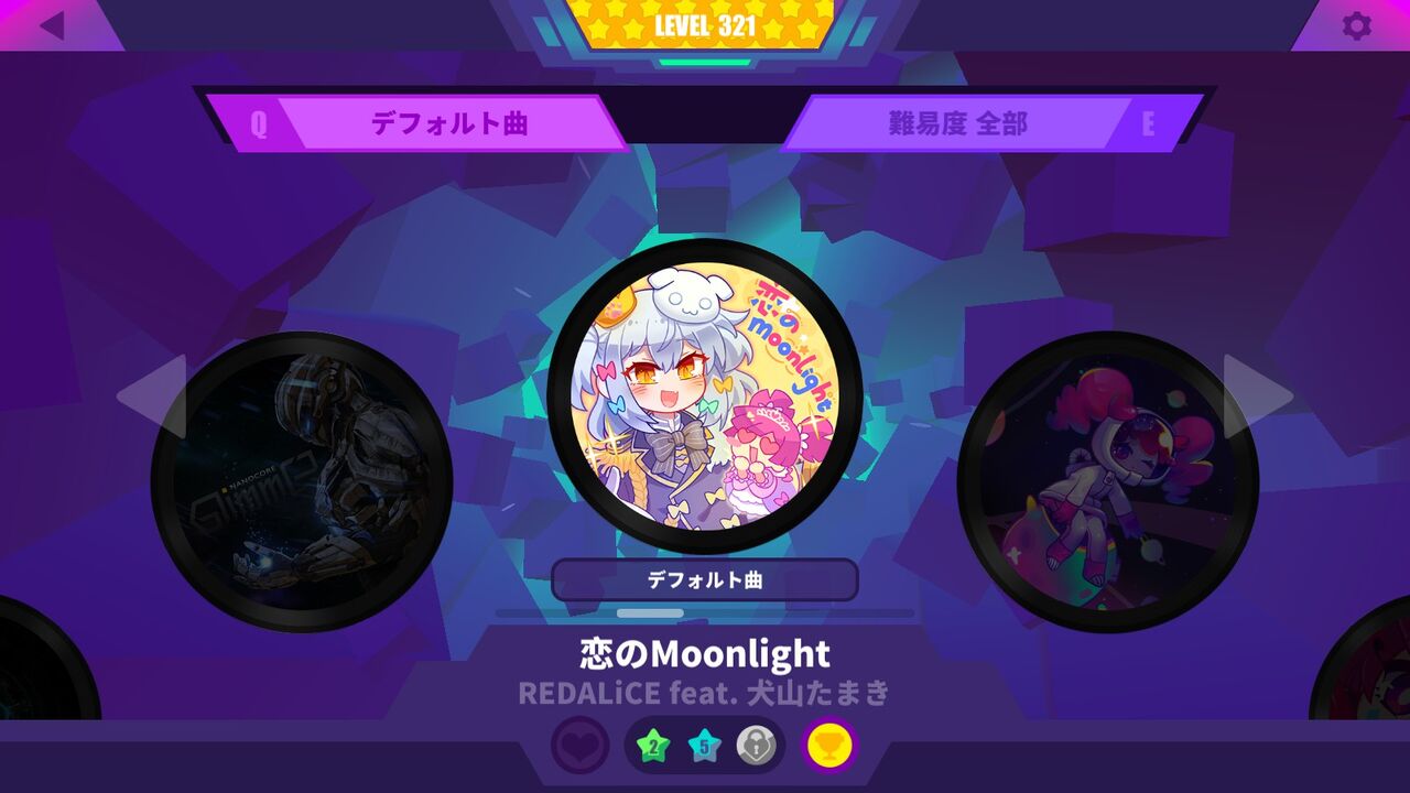 知ってる曲をいくつか玄人・達人でプレイしてみたけど、ボーカル曲なので久々だけど比較的A~Sランクでどうにかなった感じ。ミクの効果は一長一短。いらんことしてミスる場面もあれば、強引に突破できた部分も。相変わらずcosMoさんとsasakureさんの曲は難易度高め。大体音ゲーでミク曲くるとボス曲担当するのこの2人のどっちかな印象。