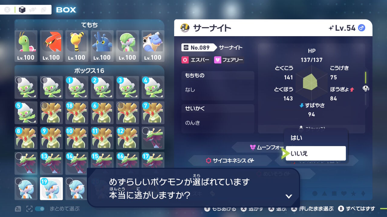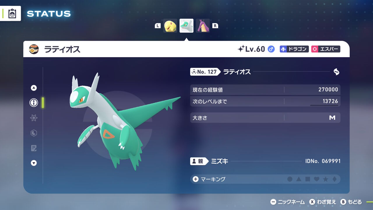 そして最初に載せた通り、これでZAで色違いが手に入る5体の準伝(ラティ兄妹&三闘)を揃えられました。よかったよかった。ちなみに厳選の個人的な感想は、楽だった順に「テラキオン>>>>>コバルオン>ラティアス>ビリジオン>ラティオス」といったところ。テラキオンは速攻で出たのを抜きにしても放置できるから圧倒的に楽。コバルオン、ラティアス、ビリジオンはシャトルランだけど、平坦かつ毎回確認できるコバルオンが一番楽、ラティアスは段差がある分ちょっとめんどくさい、ビリジオンは目視できない場所でやるからやや難。そしてラティオスは毎回ソフトリセットが必要だから一番めんどくさかった。まぁシャトルランとどっこいどっこいではあるが。
