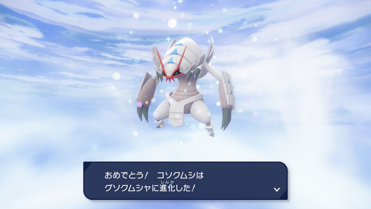 今回最後は「グソクムシャ」。メガシンカ前は原色より白っぽくなって、メガシンカは原色のメガシンカ前みたいな灰色になる。原色のメガシンカは黒っぽくなるので、色が一段階ズレた感じだろうか。顔の周りなどの赤い部分がメガシンカでは腕とかに増量されていて、原色よりもより兵器感がある。