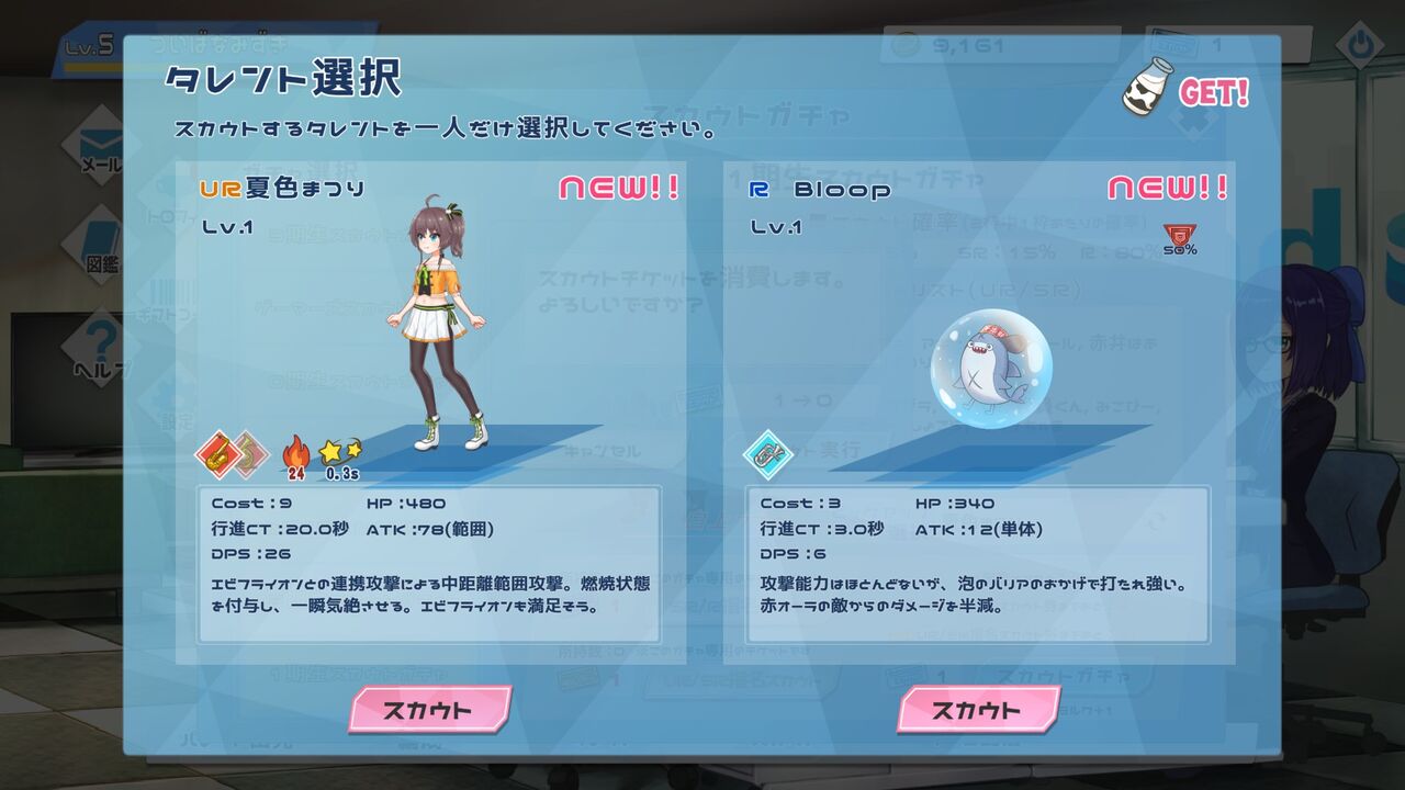 ついでなので持っていたスカウトチケット使って、ねぽらぼガチャから「尾丸ポルカ」、1期生ガチャから「夏色まつり」をゲット。性能とかは気にせず、箱推しだけど特に推しの子をピックアップ設定した感じ。新たに手に入れたメンバーで、次回はパレード進めたいね。いつになるかわからんけど。