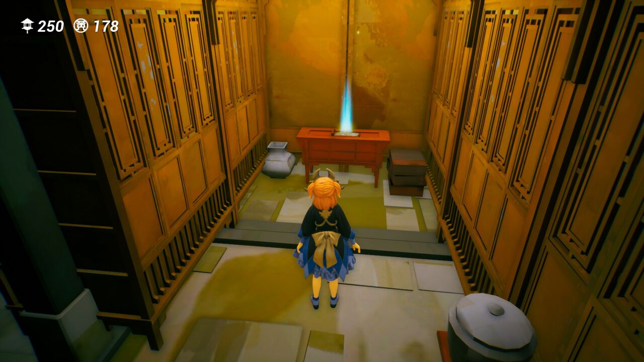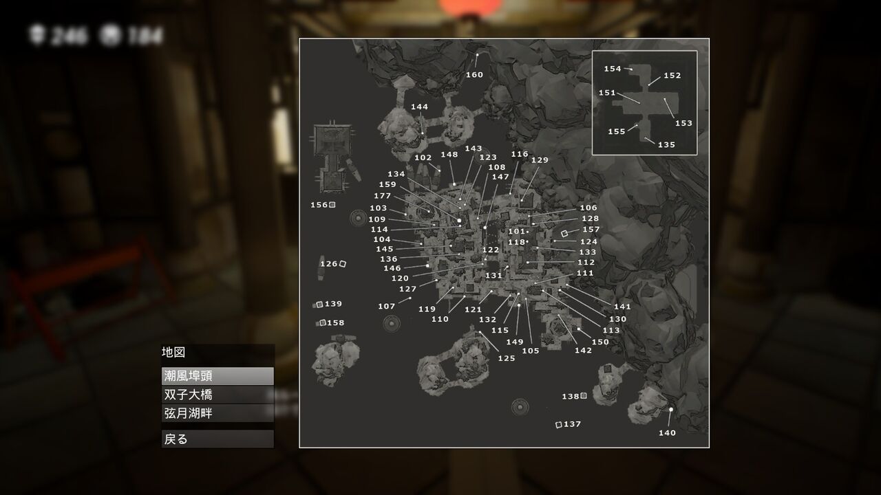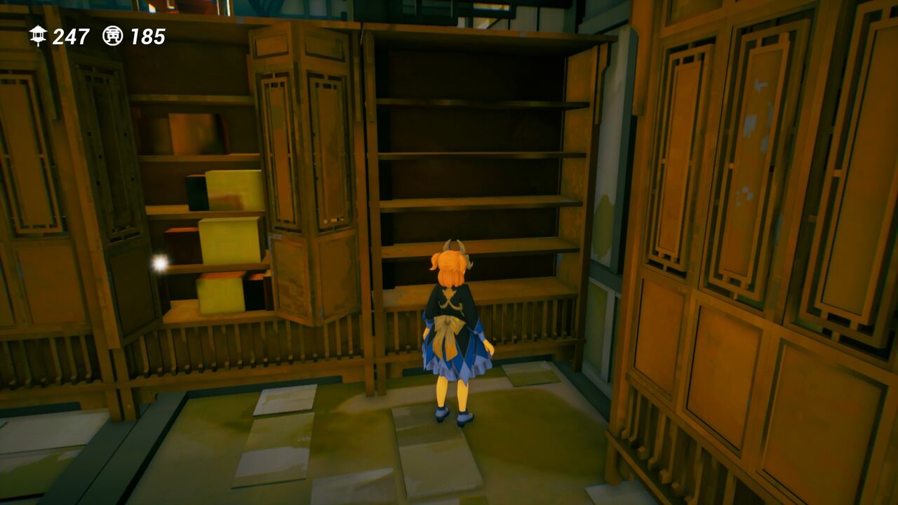 まずは潮風埠頭。書物庫の隠し部屋をそういえば確認できていなかったのだけど、実は空の棚を調べると棚が消えて中に入れるという。残っている2個はどちらもこのギミックだった。