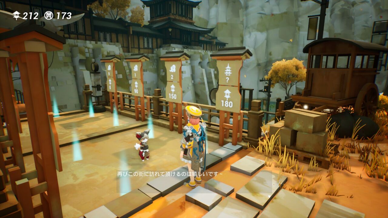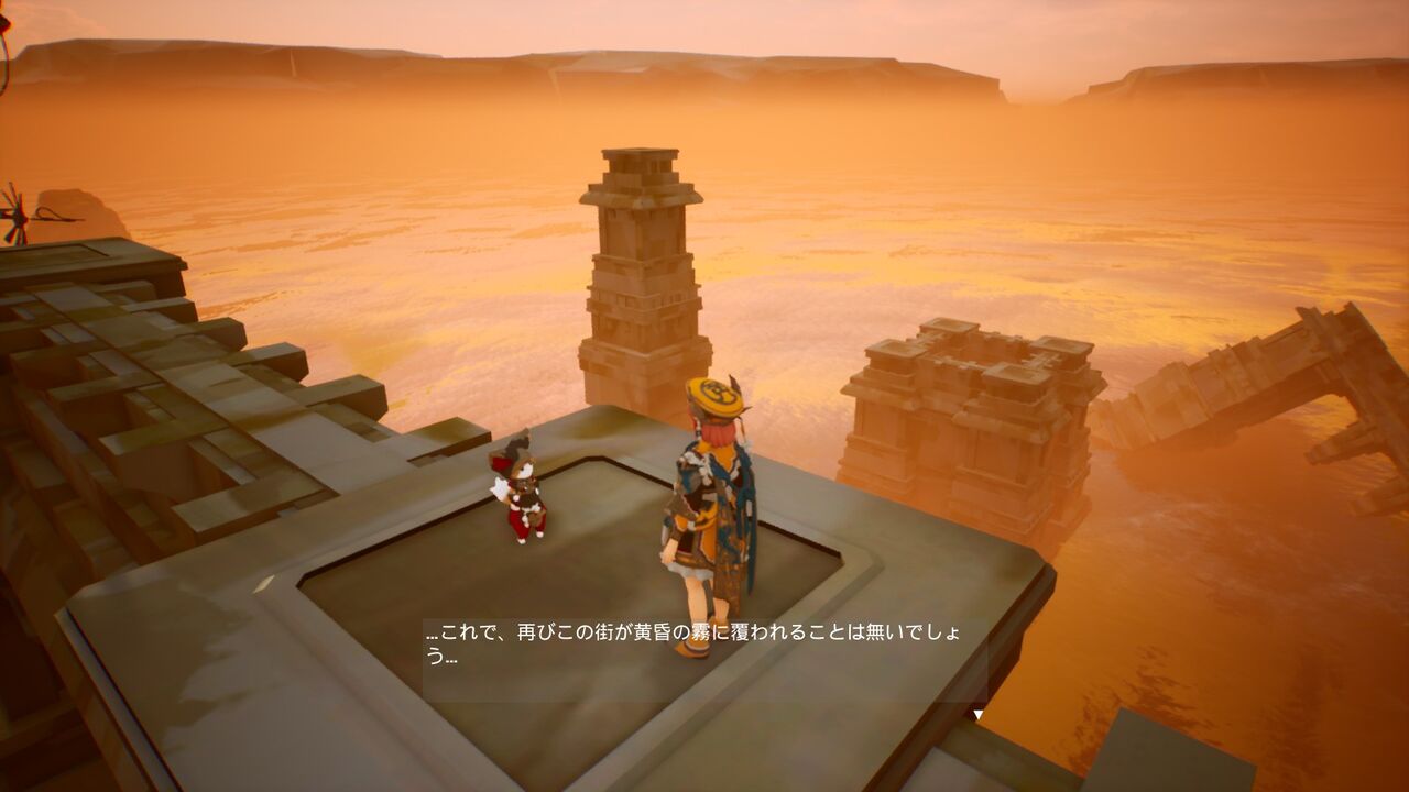 非常に面白いアクションゲームだった。ジャンプの挙動にさえ慣れれば難易度も程よい。なにより戦闘がないし落下ペナルティもスタート地点に戻されるだけで、とても気楽にやれたというのが大きい。世界観も良いので、ゆったり街中を巡りつつ軽くアクションゲームしたい人にはオススメ。探索好きって人もいいかもだけど、ぶっちゃけ各エリアでやってることは同じなのでそこは微妙なラインかも。