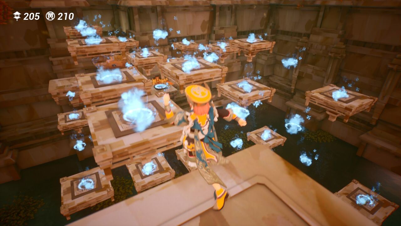 コインを稼ぎやすいというほどの場所もないので困ったところ。どうするか悩んだ末、静閑渓谷に配置されている5個を回収→飛行船からエンディングを開く→Gキー連打で即スキップして静閑渓谷に戻る→リポップしているので再度拾う…の繰り返しが一番楽そうだと判断。1周30秒かからないので多分効率はいいのだけど、当然作業ゲーと化すので面白くはない。