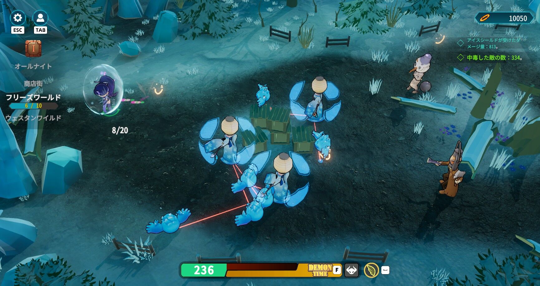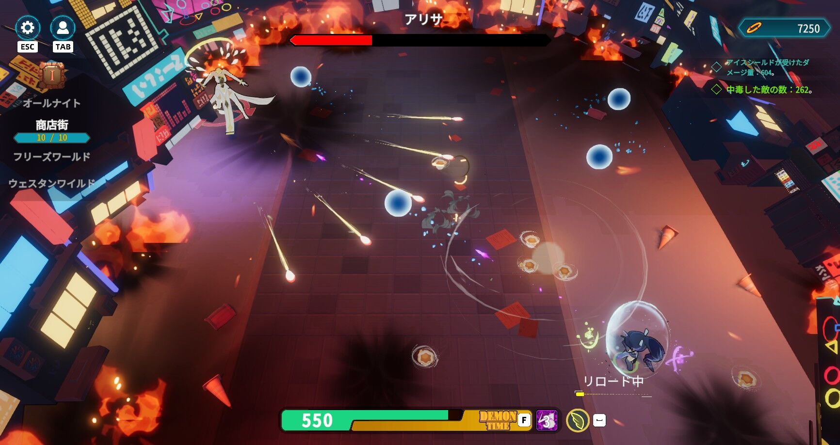 そんなこんなで順調に3エリア目、4エリア目と進行。いきなり距離詰めてくるやつとか、お供を倒さないとシールドが剥がれなくて無敵なやつとか厄介な敵もちらほら。