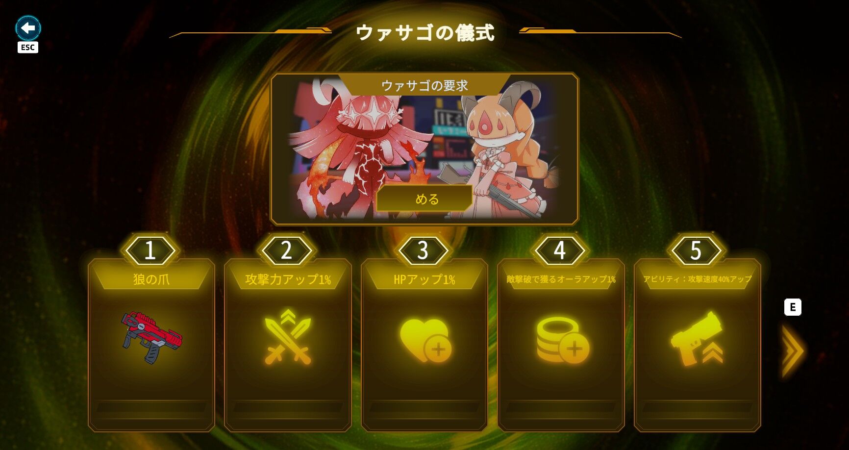 ゲームジャンルとしてはローグライク…でいいのかな?ステージをクリアして、出口にある箱からランダムで出現するスキルや武器強化などを獲得しながらボスを目指すみたいな感じ。