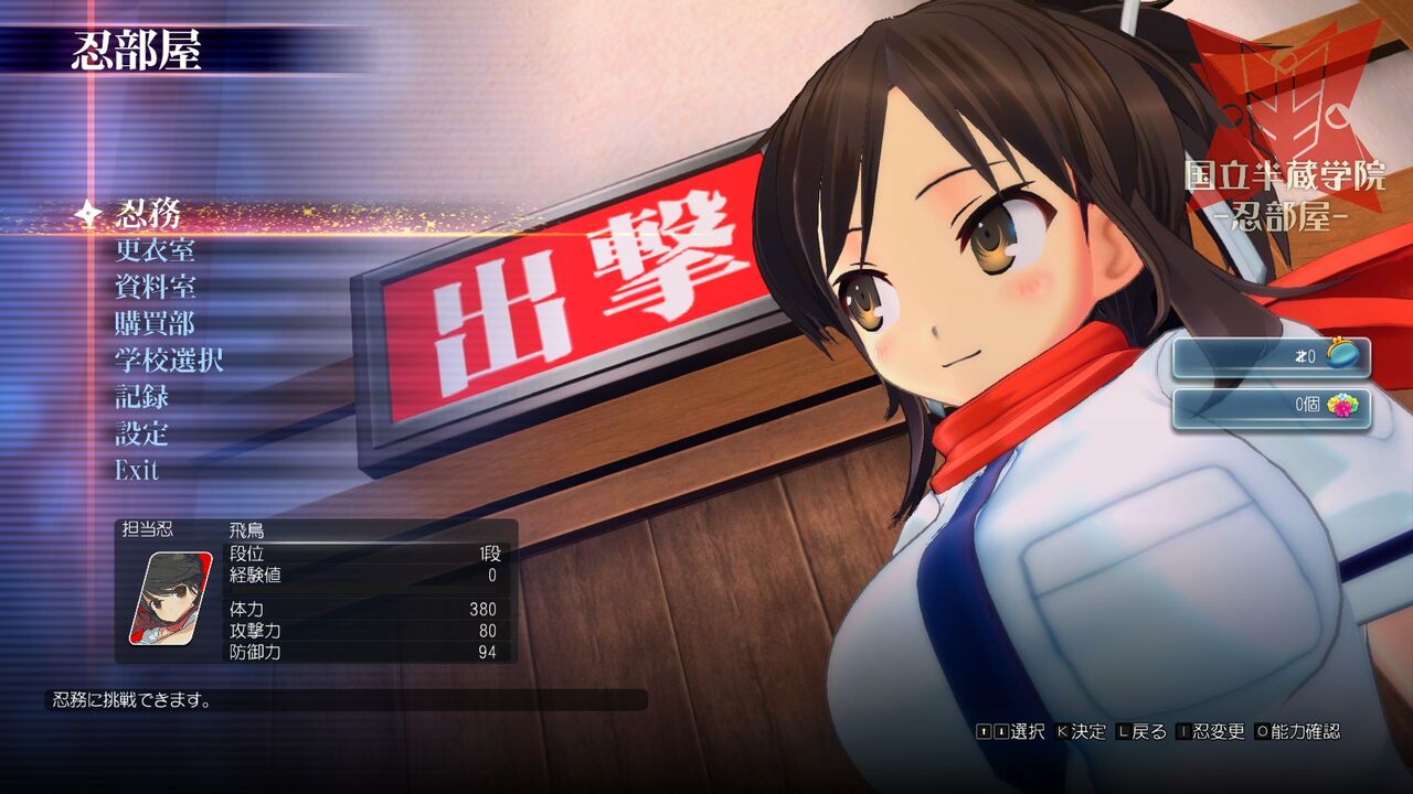 オープニングが終わると「忍部屋」へ。要するにメインメニュー。